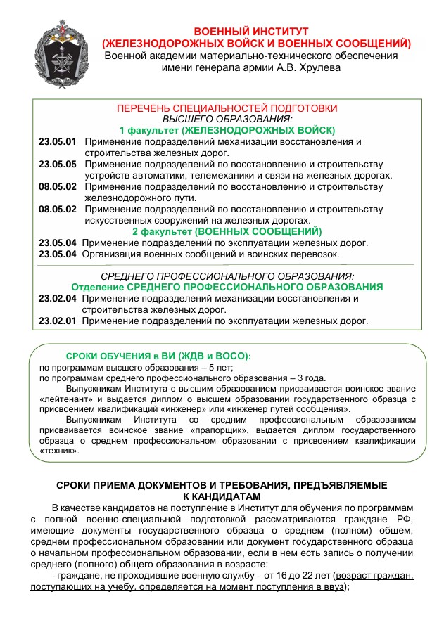 ВОЕННЫЙ ИНСТИТУТ (ЖЕЛЕЗНОДОРОЖНЫХ ВОЙСК И ВОЕННЫХ СООБЩЕНИЙ) Военной академии материально-технического обеспечения имени генерала армии А.В. Хрулева